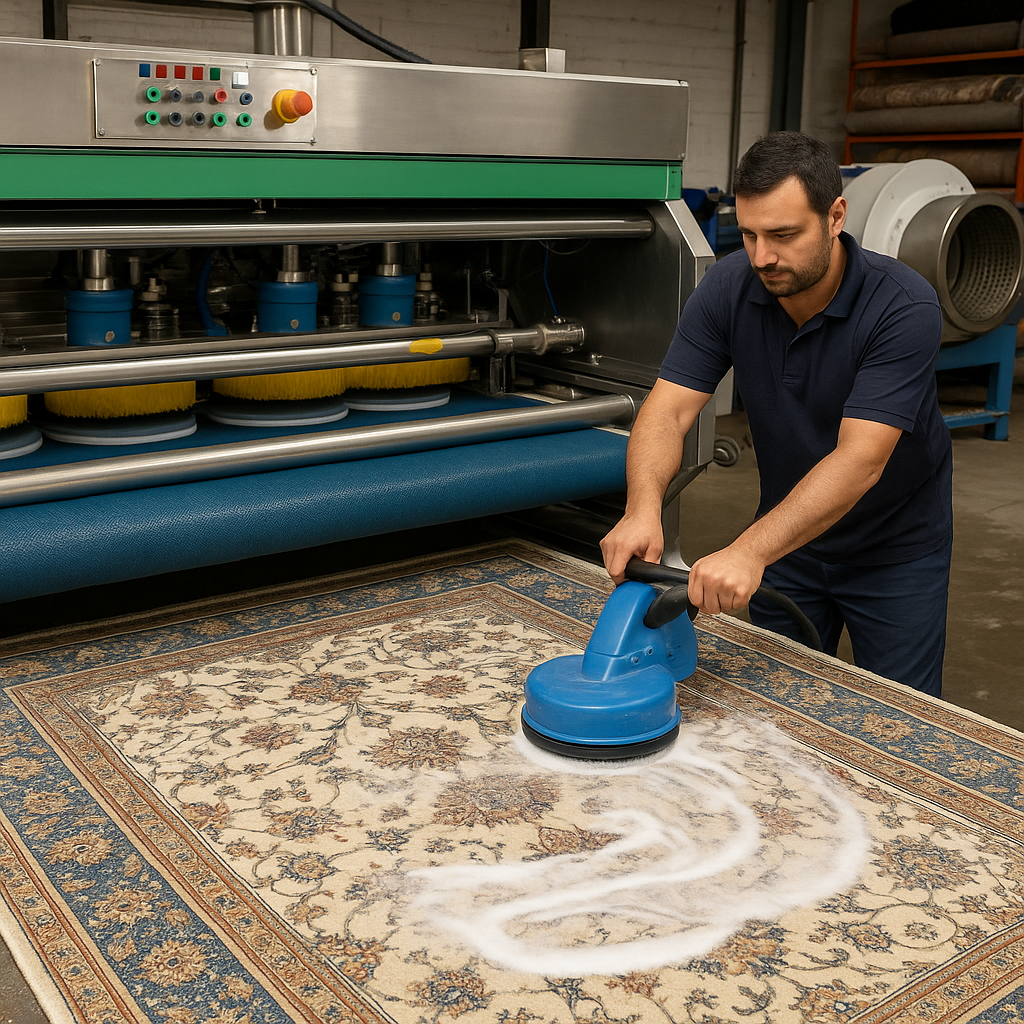 - Toz Alma ve Hazırlık – Halılar yıkama öncesi tozlarından arındırılır.